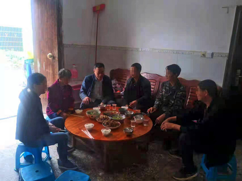 藍曉江的兄弟姐妹邀請盛國慶吃團圓飯。紹興市公安局柯橋區分局供圖