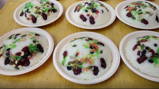 近日,余杭閑林街道的邵國梁夫妻倆一起在廚房中忙碌著。紅棗、杏仁、瓜子等八種果干與糯米一同蒸制,口感軟糯的八寶飯就新鮮出爐了。這些色彩鮮艷的八寶飯和冒著熱氣的姜茶,都是送給閑林街道精密智控工作專班的值守人員的。疫情發生以來,他們24小時在崗,打電話、做流調、精準賦碼,一刻也不停歇。即便是除夕夜,所有人依然選擇放棄團聚,在工作中度過。村民送來的“年夜飯”,溫暖了大家的心窩。