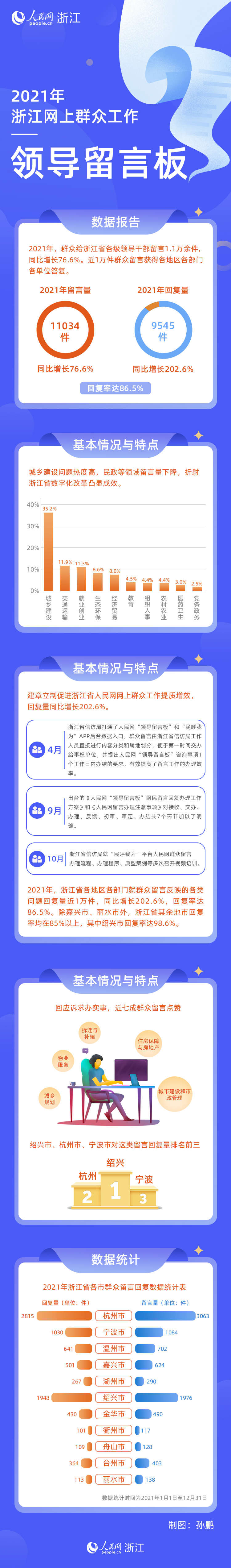 一組數據,看2021年人民網“領導留言板”浙江留言辦理情況。