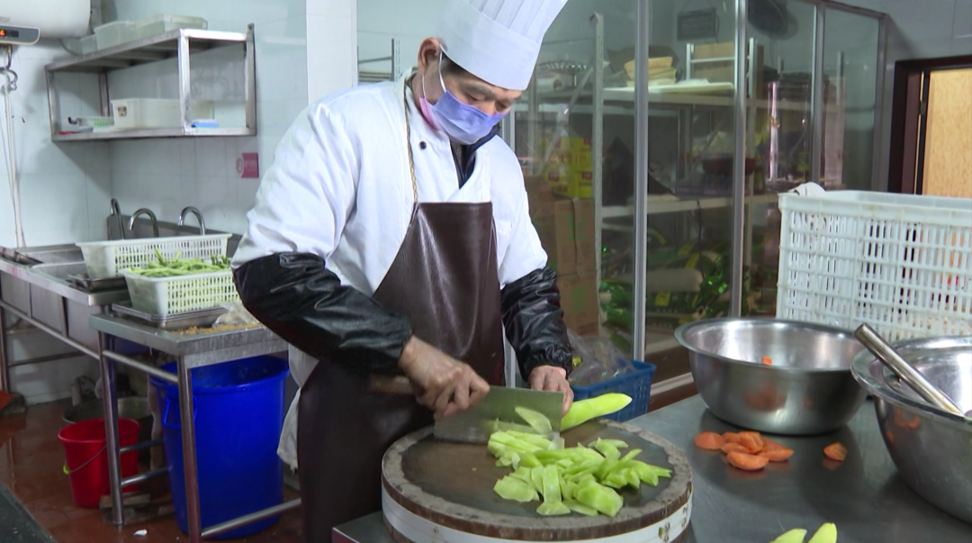300多人的年夜飯是一項大工程,主廚王林曉從當天凌晨4點便開始忙碌起來。廚房另一邊,福氣盲盒也在隔離人員手上飛速趕制,拆卸材料、挑選分類、裝箱,工作桌好似一道“流水線”。
