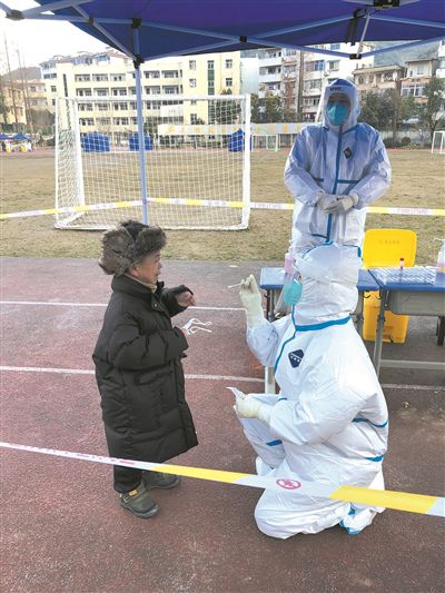 從正月初一到初六,在富陽的這些日子,每天清晨他們就要出發,在寒風中工作。富陽的熱心市民為他們送去暖手袋等物品,王翌說:“小孩、阿姨、奶奶……他們都會給我們送暖手用品,我們很感動!痹谒磥,服務好每一位核酸檢測對象是醫護人員的本職工作!皢蜗ス虻厥呛茏匀坏氖,本能而已!笨吹奖慌南碌恼掌,王翌說她對樂叔印象深刻,因為他個子不高,所以她每次都單膝跪地為他采樣。她說,其實她跟樂叔很有緣,因為他每次來做核酸檢測都在她服務的這個通道。王翌沒想到樂叔這么熱心,還尋起她來,她感到很不好意思。