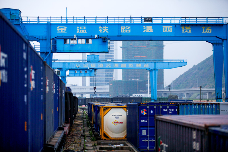 春節期間,大量貨物從金溫鐵路溫州西站裝車運出。戴益澤攝