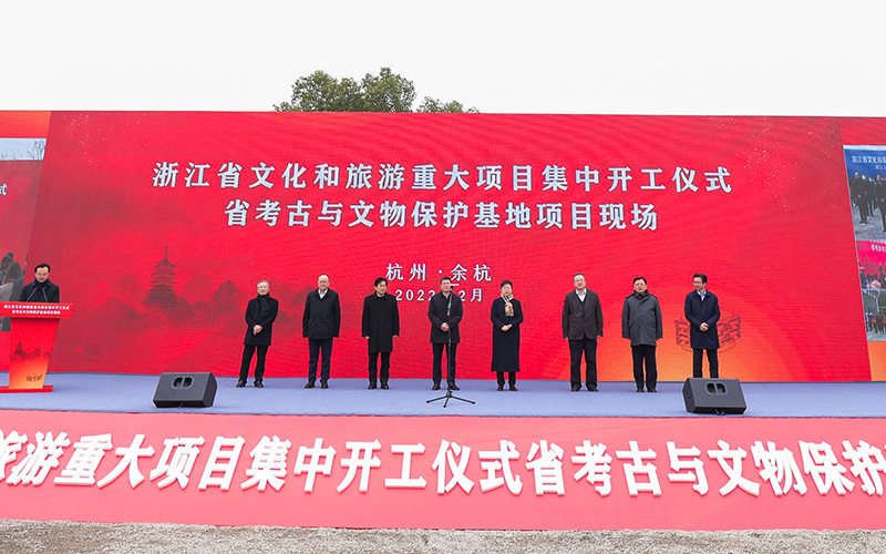 2月16日上午,2022年浙江省文化和旅游重大項目集中開工儀式在杭州市余杭區浙江省考古與文物保護基地項目現場舉行。10個設區市分會場以視頻連線方式同步開工。