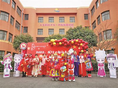 2月16日,在紹興越城區馬山街道群英小學的大門口,舉行了民族文化風情節。學生們穿著各自民族的服飾,手提燈籠走進校園,朝氣蓬勃地開啟了又一個學期的新旅程。