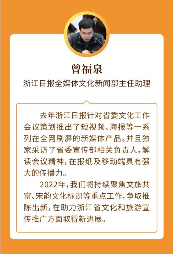 相關負責人表示,2022年是高質量發展建設共同富裕示范區的深入推進之年,浙江省文化和旅游系統將持續發力講好文旅故事,傳遞文旅聲音,奮力實現開門穩、開門紅,蹄疾步穩向共同富裕邁進。