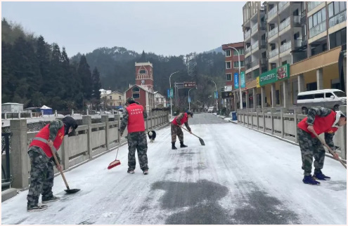 為保障廣大群眾的出行安全,文成縣銅鈴山鎮的黨員志愿者一早便趕赴各路段進行清雪,并及時在上山、連續緊急彎道等處設置積雪路滑提醒,讓來往車輛注意行駛安全,并通過電子屏、入戶走訪等方式,多渠道向村民群眾宣傳防寒保暖措施。