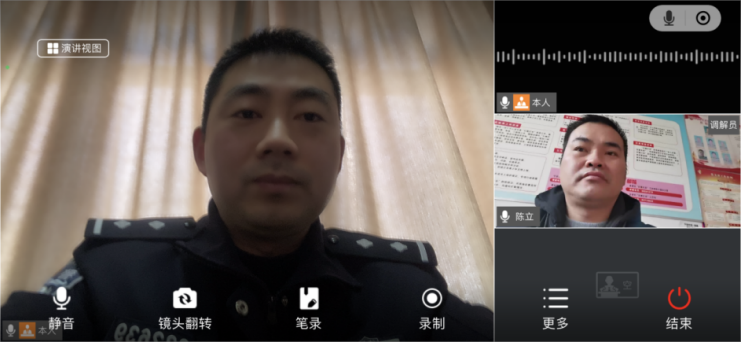 逍林鎮某村的調解干部岑沛在訴前調解一起買賣合同糾紛過程中,發現雙方當事人之間對抗情緒明顯,情緒激烈?紤]到疫情防控需要和雙方現狀,岑沛通過村里的“共享法庭”與逍林法庭法官謝飛娜取得了聯系。法官在了解案情后,通過“共享法庭”的在線視頻功能,開展了線上調解并最終調解成功。