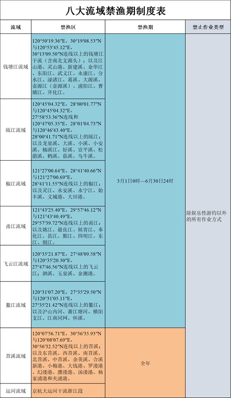 八大流域禁漁期制度表。數據來源:浙江省農業農村廳