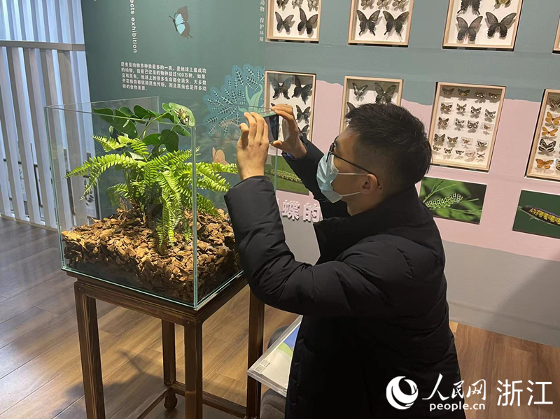 參觀者正在拍攝活體展缸內的昆蟲。人民網 王蕭蕭攝