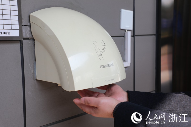 公廁配備的立式干手器。人民網 方彭依夢攝