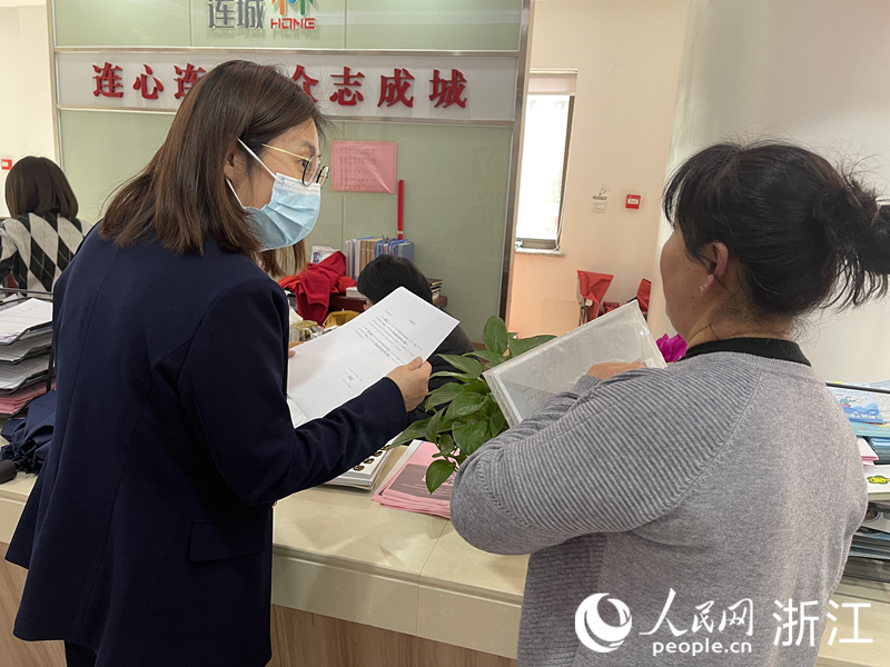 沈麗美耐心回復居民的咨詢。人民網 王蕭蕭攝