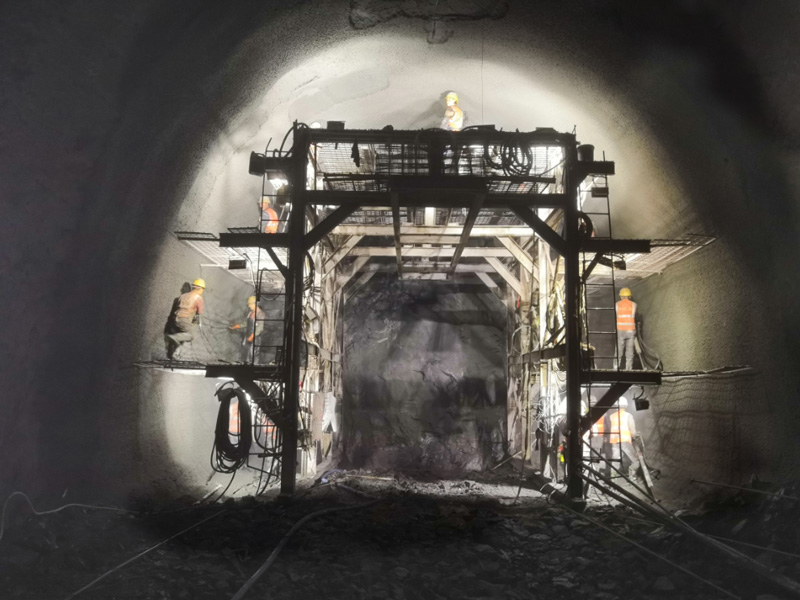 在浙江交通集團旗下的浙江(交投)鐵路建設總指揮部的統籌部署、科學組織下,建設者們通過實地勘察、反復測算、合理設計,擬定了在金臺尖隧道進口與既有斜井之間、既有斜井與出口之間各增加一座斜井的方案。金臺尖2號斜井于2021年10月18日進洞施工,全長708.5米,以Ⅲ、Ⅳ級圍巖為主,面對工期緊、洞內涌水大等問題,建設者精心組織、合理安排,派遣黨員先鋒隊就工點進行全程監督,在施工過程中嚴格執行“先探測、管超前、短進尺、弱擾動、強支護、勤測量”的原則,過程控制中實行“高標準、嚴要求、零容忍”的態度,并多次優化開挖支護方案,采取各種有效措施,克服了各項施工難題,實現最快日進尺達11米,取得了提前原計劃22天挑頂的階段性勝利。