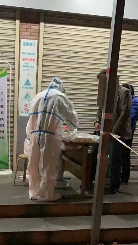 3月10日晚,劉雙燕在核酸采樣現場留下了唯一的背影照片。杭州市上城區閘弄口街道供圖