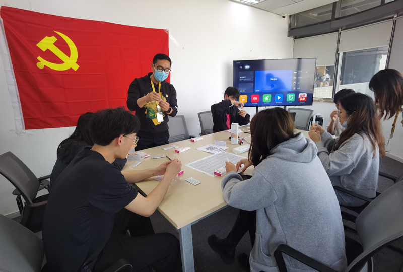 街道工作人員上門組織企業員工學習使用自檢試劑。文暉街道供圖