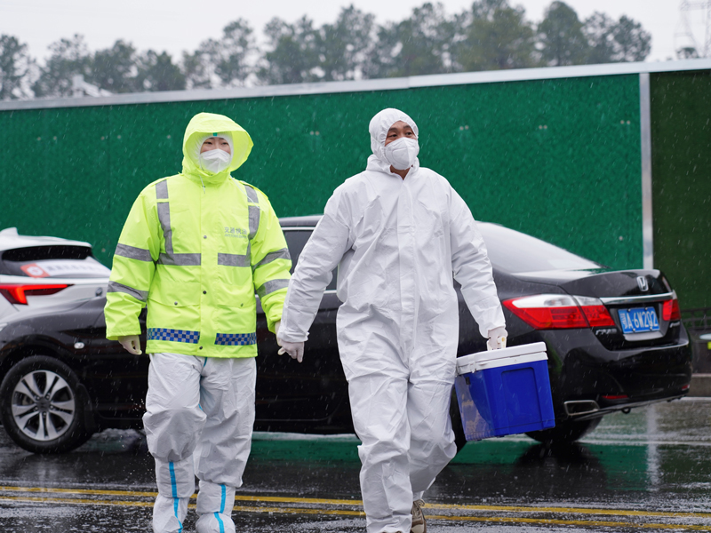 核酸樣本轉運“鏢師”的身影穿梭在余杭各個入城口的核酸檢測點,“轉送樣本要嚴格按照規定穿戴防護服和防護面罩,每次交接樣本要嚴格消殺,并且確保樣本密封性!庇嗪紖^交通運輸局相關負責人介紹,為了節省時間,他們的一日三餐幾乎都是匆匆扒拉幾口,盡量不喝水,避免上廁所耽誤時間。