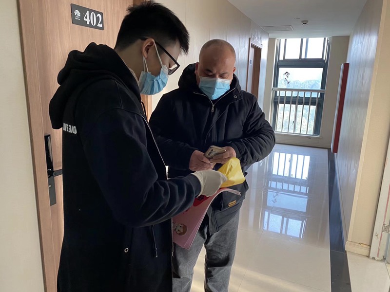 為守好防疫的最小單元,連日來,洪濤和其他社區工作人員主動站在疫情防控第一線,為社區居民筑起一道堅固的安全防線。據了解,在結網社區,為了讓居家觀察人員安心在家度過14天觀察期,社區工作人員化身“心理疏導員”,經常在微信上和他們閑話家常,幫助其調節情緒。同時,洪濤還積極發動黨員和志愿者成立了一支“親情網代購”服務隊,大家化身“快遞員”“外賣員”“跑腿員”,為居家隔離戶提供購買、配送服務。