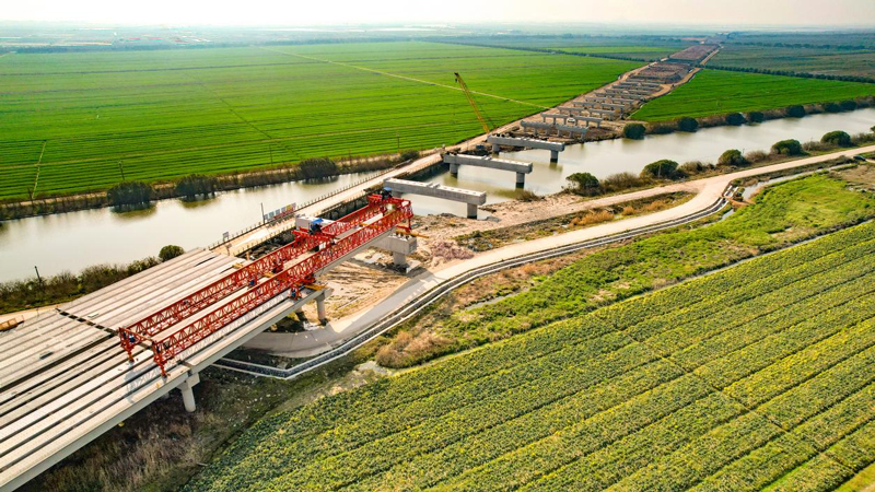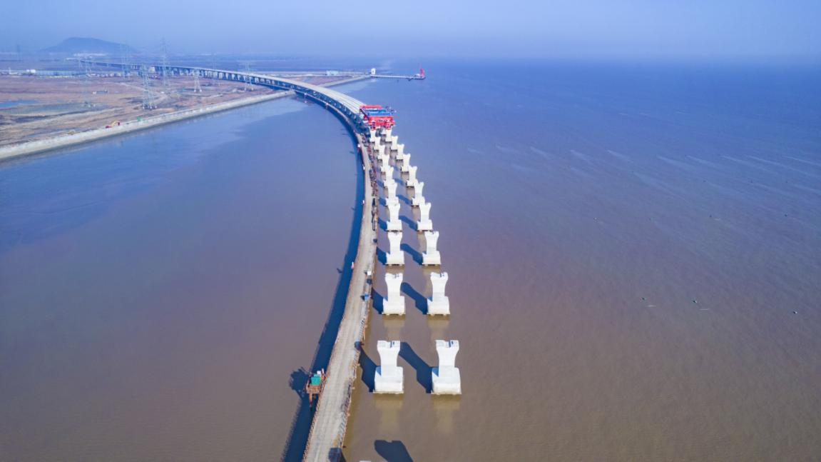 “預計再有15天就能把剩下的梁板全部架設完成,十塘江特大橋就可以實現全線架通,也將標志著杭甬復線寧波段一期項目陸域段首座特大橋的架設任務全部完成!焙拣畯途寧波一期項目施工方相關負責人介紹。