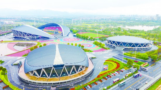 3月26日,從空中俯瞰2022年杭州亞運會金華賽區比賽場館(無人機照片)。3月25日,金華市金華一中、艾青中學和市體校三片足球訓練場一致通過杭州亞組委賽事功能驗收,至此2022年杭州亞運會金華賽區三個比賽場館、四個訓練場館和運動員分村全部通過亞組委賽事功能驗收,是杭州之外第一個所有場館通過驗收的城市。(胡肖飛)