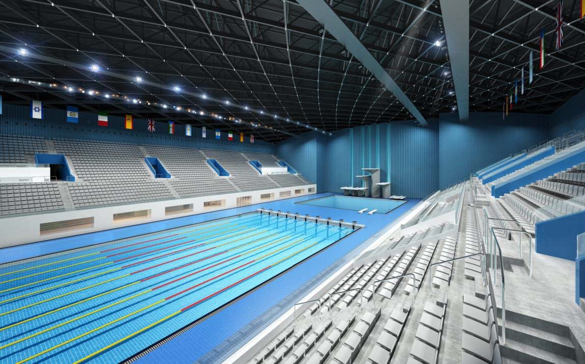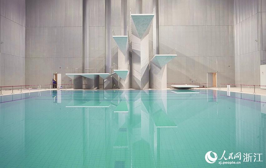杭州奧體中心游泳館為亞運會游泳、跳水、花樣游泳項目比賽場館及訓練場館,總建筑面積53959平方米,觀眾席位數約6000個,是一個集游泳、跳水比賽和訓練為一體的專業運動場館。