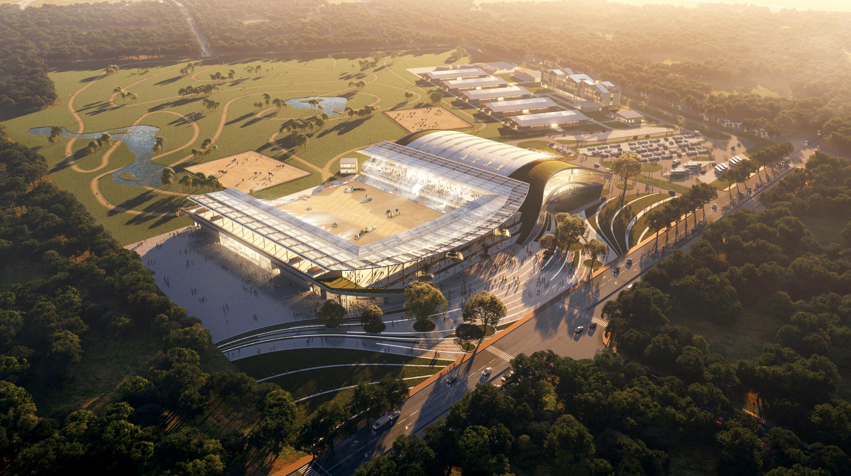 桐廬馬術中心位于杭州市桐廬縣瑤琳鎮。項目設置馬術競賽場館場地及配套設施,包括障礙賽、盛裝舞步、越野賽等相關比賽場地、賽道及設施。占地面積730余畝(另租150畝臨時用地作為越野賽道),總建筑面積約5.2萬平方米。