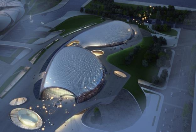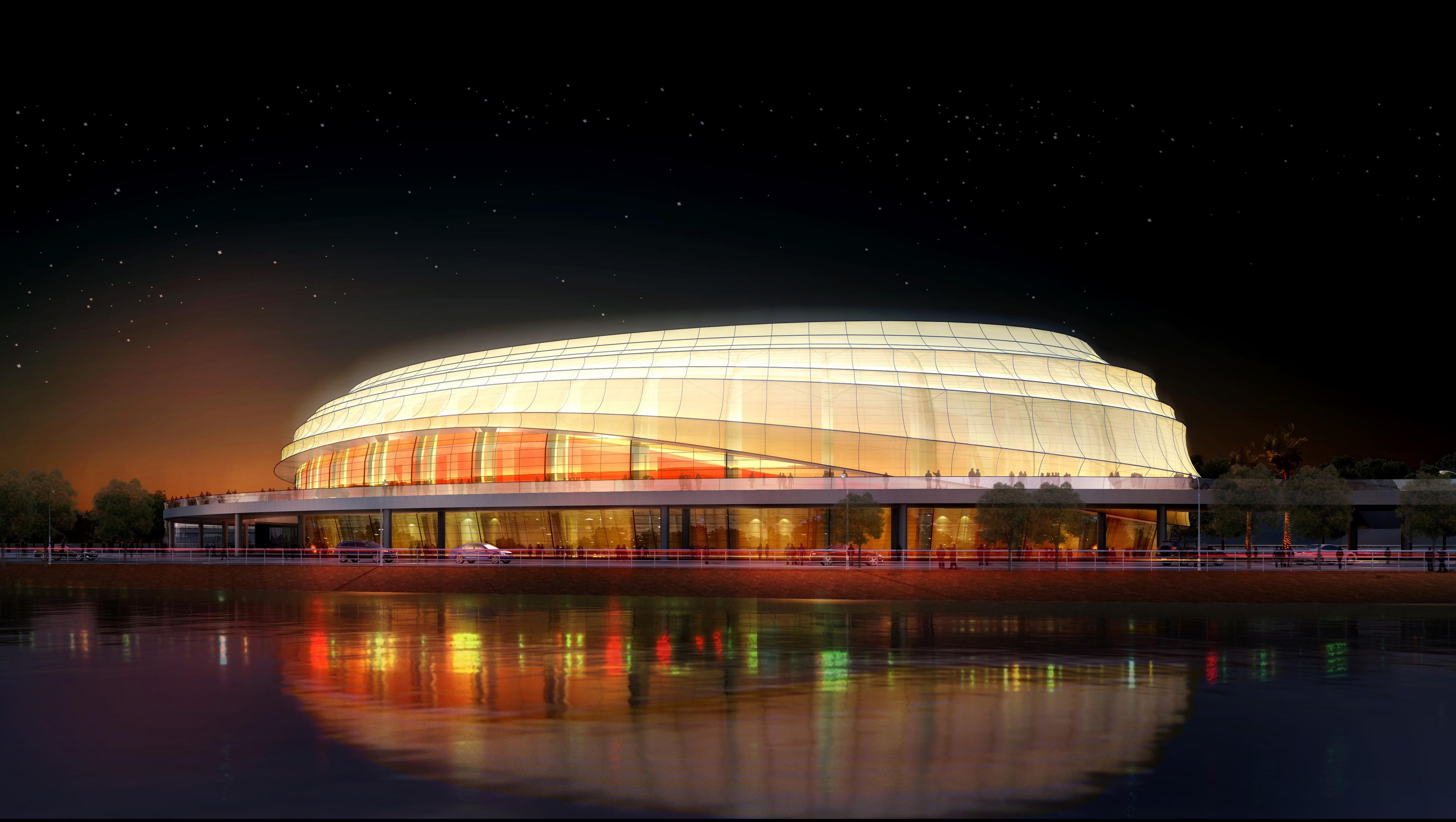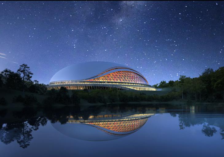 紹興市柯橋區羊山攀巖中心為亞運會攀巖項目比賽場館,位于紹興市柯橋區齊賢街道,羊山石佛風景名勝區內。規劃用地面積15826平方米,總建筑面積8950平方米,主體建筑高度小于24米,設計座位2100個。設計提煉自江南水鄉絲綢產業符號——“蠶繭”,并融合輕紡紡織物特有的飄逸質感,提取攀巖等極限運動中力量與動感的美學線條,形成了建筑形象與運動主題相契合的設計概念。