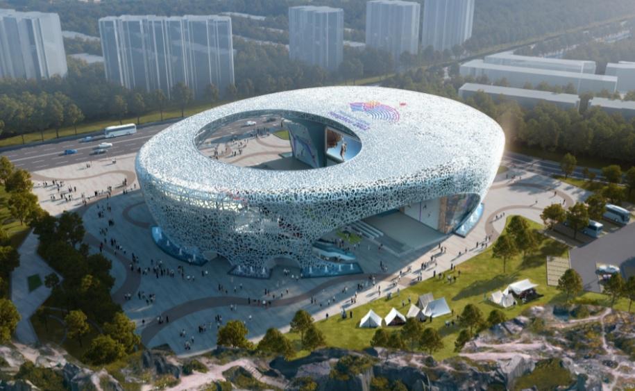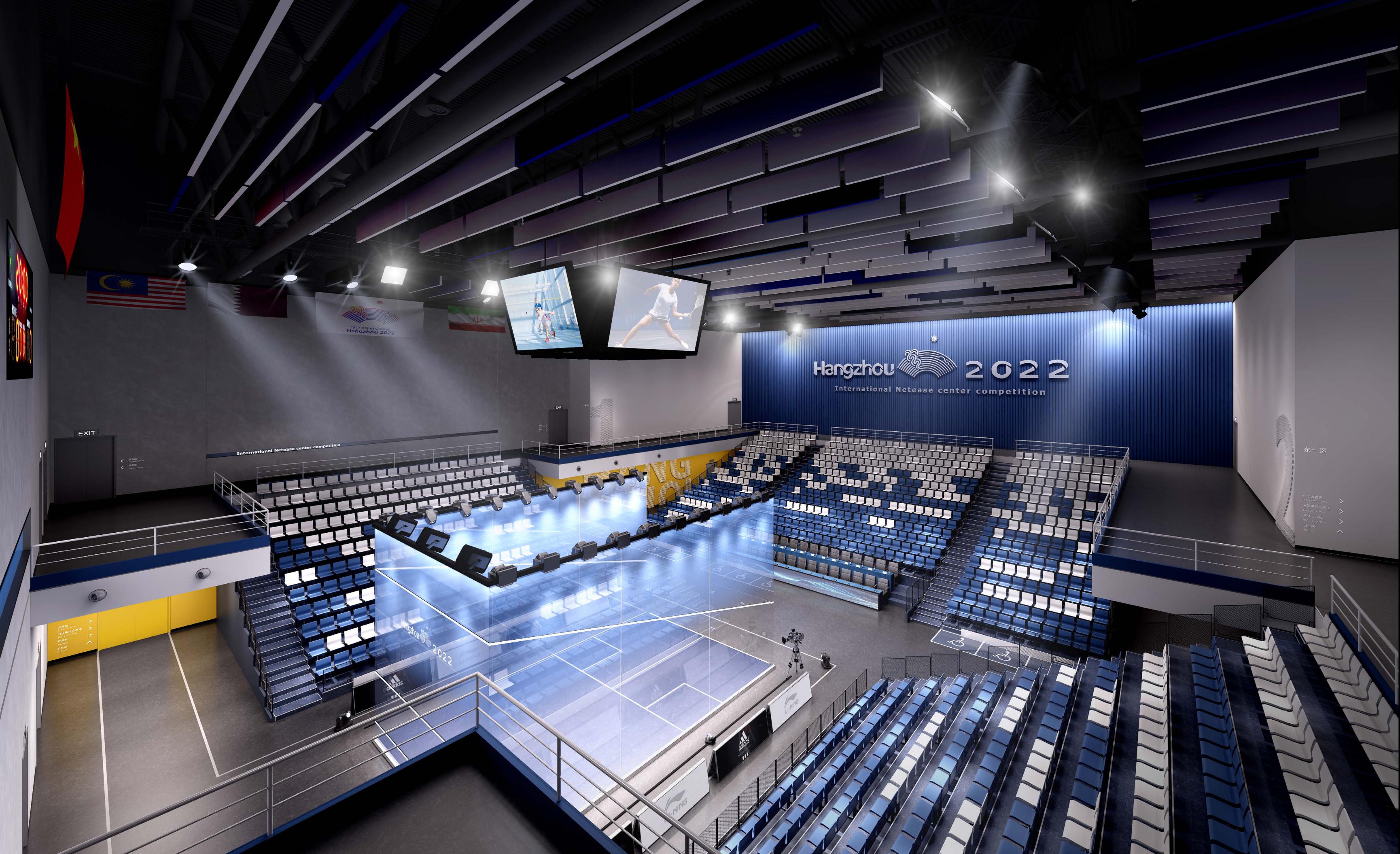 中國杭州電競中心位于杭州拱墅區,承擔亞運會電子競技比賽項目比賽。該場館占地12838平方米,建筑面積79790平方米,坐席4087個。