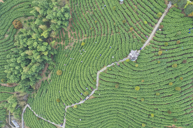 放眼望去,宣城市旌德縣白地鎮一彎彎一排排的茶樹錯落有致。江建興攝