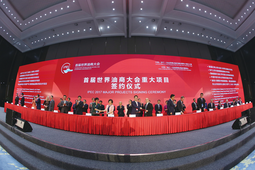 首屆世界油商大會重大項目簽約儀式。中國(浙江)自由貿易試驗區舟山管理委員會供圖