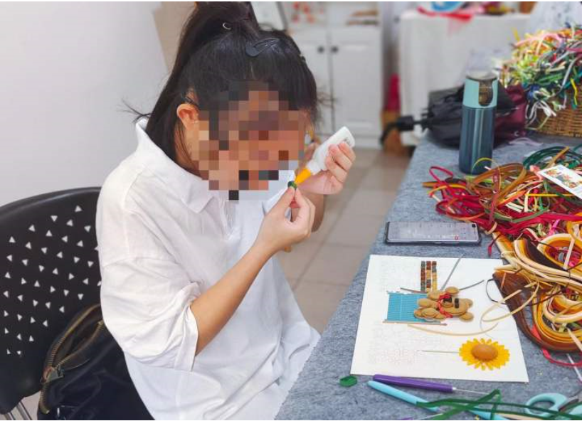 初中畢業后,小雨害怕不能適應寄宿生活,又擔心自己被孤立,從而不愿意繼續上學。隨后,在父母的支持下,她來到青苗“殘疾人之家”。為了幫助小雨盡快融入集體,發掘其興趣愛好,青苗“殘疾人之家”的老師們帶領她體驗了插花、甌塑、衍紙、計算機等系列技能課程。