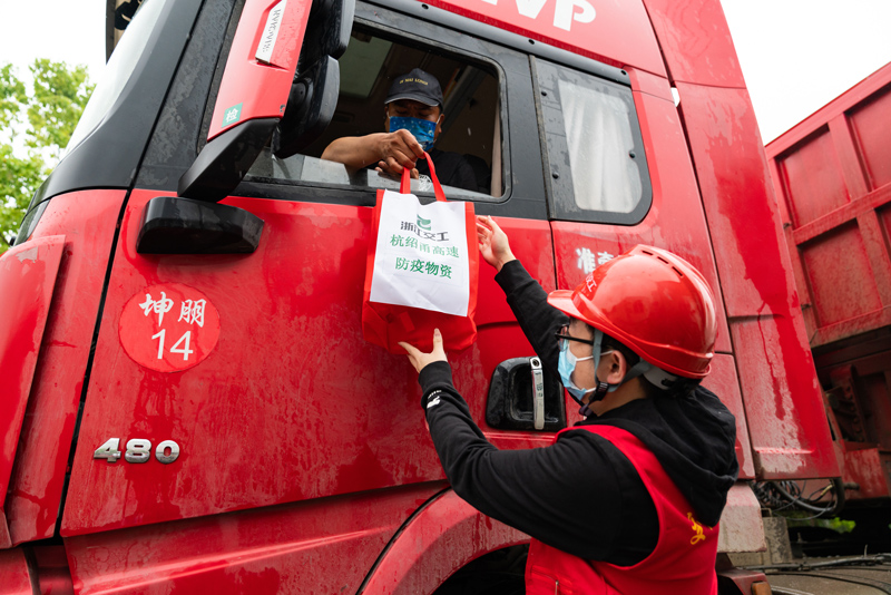 得知此情況后,浙江交通集團杭紹甬高速杭紹段項目積極行動,通過開展送防疫包、送食品包、提供休息點以及防疫政策咨詢等各類暖心服務,全方位支持在途貨車司機,匯聚起源源不斷的“抗疫”力量和信心。