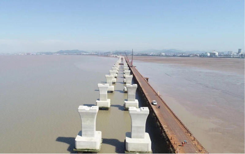 為解決淺灘區施工難的問題,浙江省交通集團杭甬復線寧波一期項目公司(以下簡稱“項目公司”)聯合承建單位中鐵十九局集團組織專家進行了多次論證,決定采用鋼棧橋輔助海域橋梁下部結構施工作業的方式,最終順利完成全部海域結構物施工。