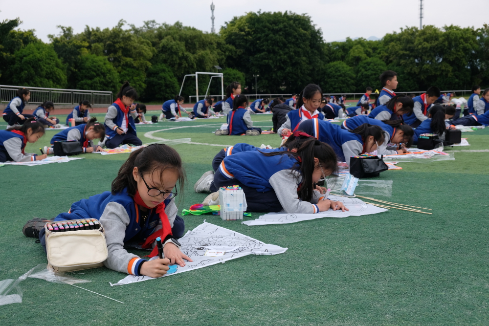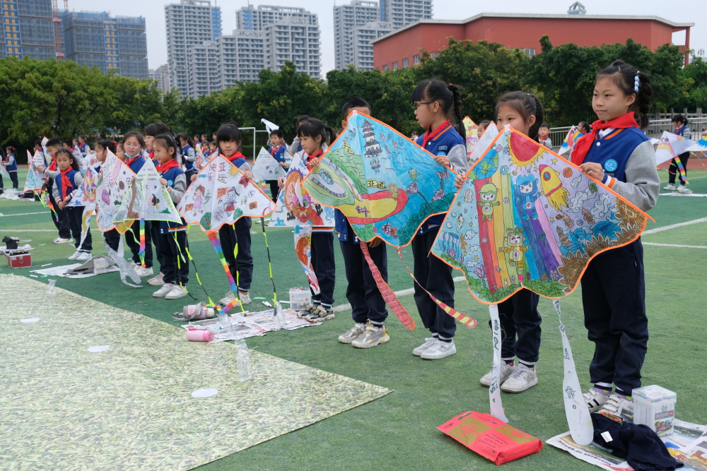 童心迎亞運 溫州甌海校園放飛百支手繪風箏
