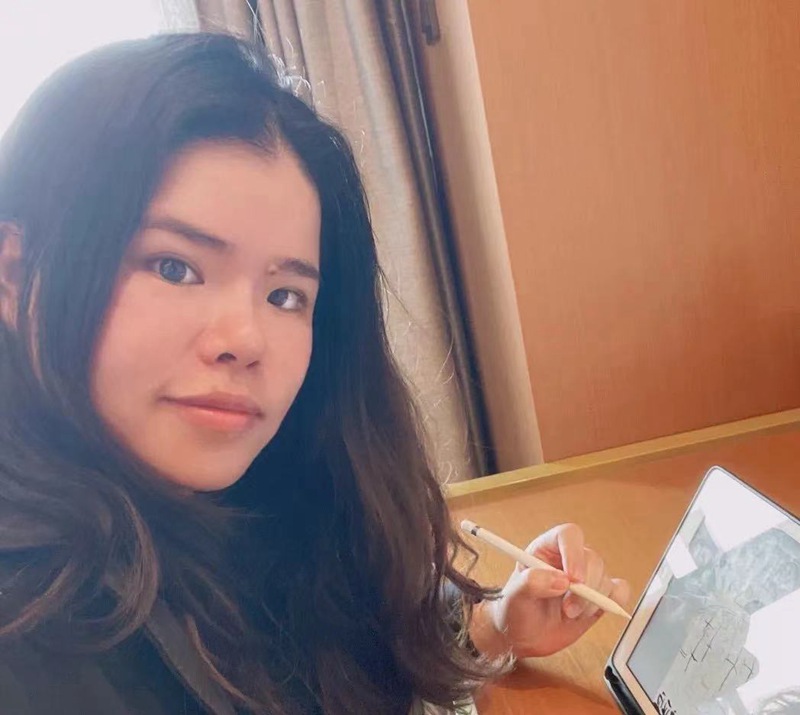 夏宇軒正在進行手繪創作。浙江省人民醫院供圖