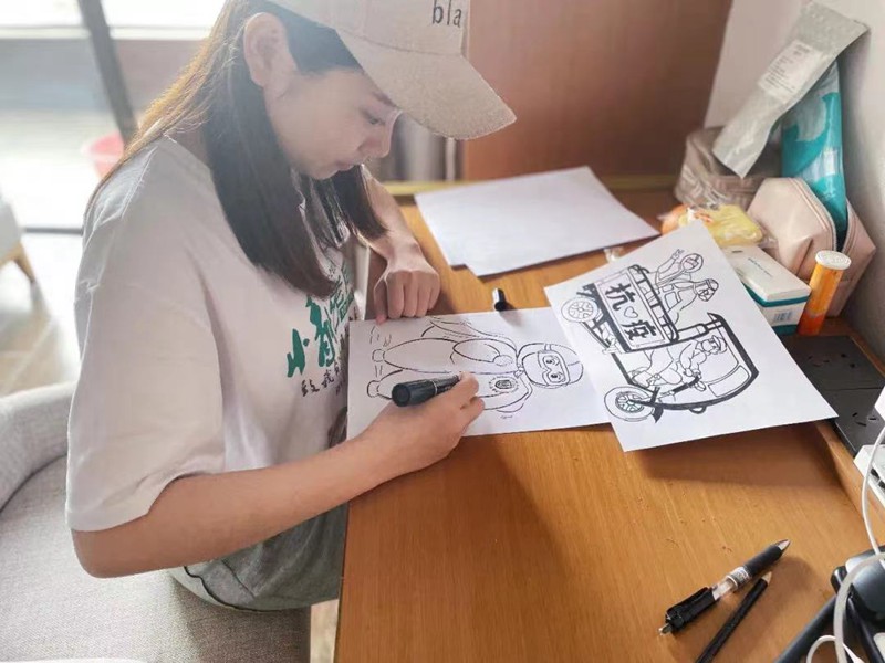 浙江省人民醫院馳援上海的“大白”正在進行手繪創作。浙江省人民醫院供圖