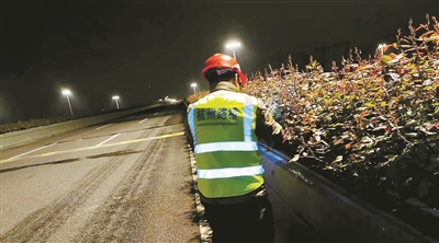 “結合常規巡查,新增加負責人、管理員、班組三級巡查模式,通過車巡看整體、人巡觀細節,檢查市管高架綠化全域路線,分別做到每月、每半月、每兩天一次全覆蓋,對于高架主線和重點匝道做到每天巡查!焙贾菔谐枪芫质姓行南嚓P負責人介紹,2022年的“高架花廊”巡查主要以綠化長勢、灌溉情況、病蟲害、排水設施滲漏等內容為主,對隱患問題第一時間發現,第一時間處理。