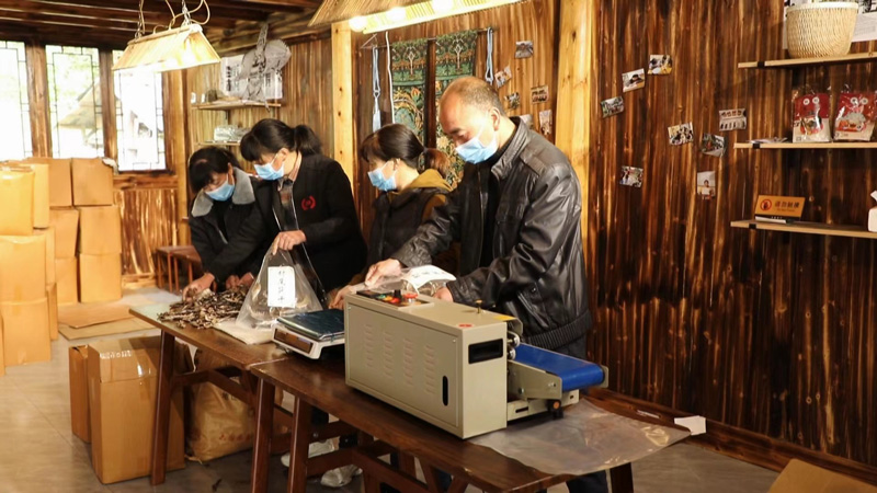 此外,村味館內還配備了產品自動包裝設備。村民們可以根據自身情況選擇在這里兼職,將收購來的筍干等農產品進行分揀、包裝。經過生產流程加工,農特產品的品相有了很大的提升,閑置的勞動力也得到了盤活。