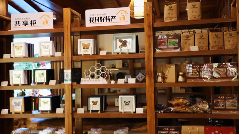 眼下,羅陽鎮正充分利用“共享社·幸福里”模式,將各村的資源充分整合,轉化成為經濟實力。該鎮大溪源村就依托當地特色的蝴蝶資源優勢,除了售賣村內特色農產品以外,還上架了許多旅游紀念品“蝴蝶標本”以及周邊的文化產品。