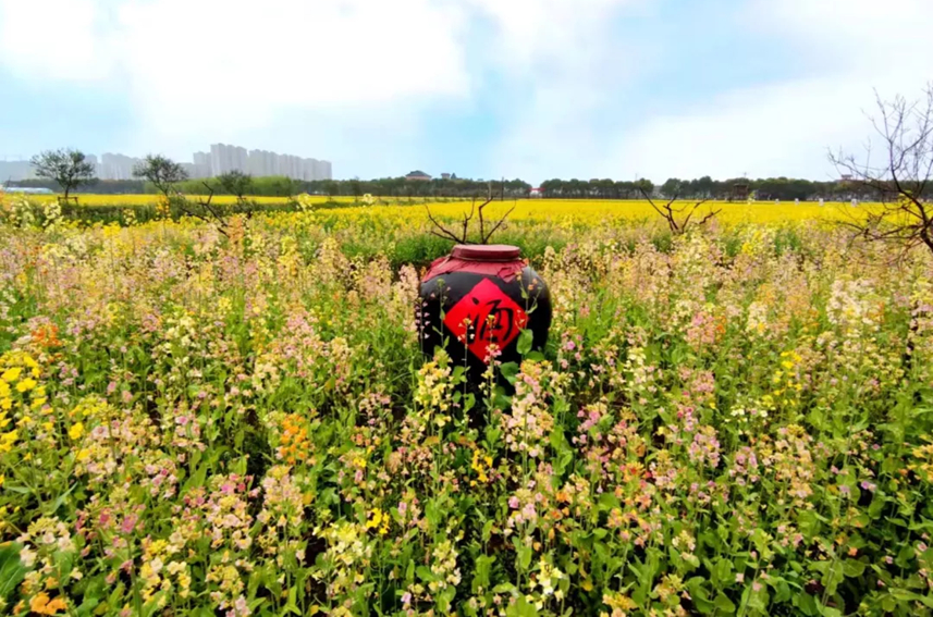 暮春時節,來到杭州市錢塘區江東村,一望無垠的田地里,油菜花絢爛綻放,在明媚的陽光照耀下,勾勒出一幅田園風景。