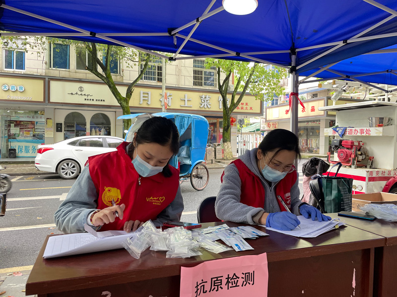 0419拱墅疫情防控形勢嚴峻,南安社區居家隔離、居家觀察戶數量猛增,志愿者短期內緊缺。得知這一情況后,社區黨員骨干們踴躍報名。已至古稀之年的黨員朱瑞土主動與社區黨委書記聯系,“我身體很好的,卡口志愿者、居家醫學觀察監測點志愿者都能上!”黨員黃錫珍發揮“石頭精神”,哪里需要往哪搬,自4月2日起,她一直堅守在尹家壩路—山西園路卡口,除此之外,她還是一名優秀的核酸檢測點信息錄入員。黨員俞水法因個人情況,無法參加志愿服務,他自掏腰包為卡口晚班志愿者送點心,在大雨天氣為志愿者清理帳篷頂上積水。在黨員的帶動下,越來越多的居民加入到志愿服務隊伍中。