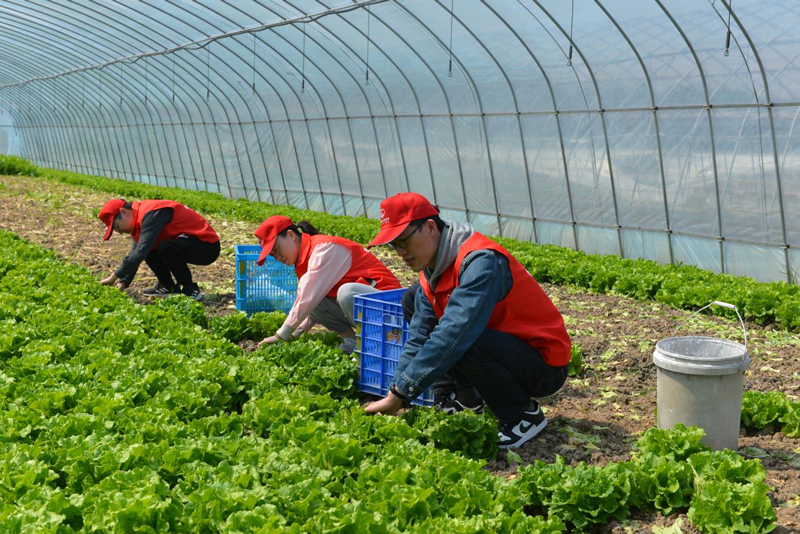 “香溢”志愿者幫助農戶采摘蔬菜。黃璐培攝