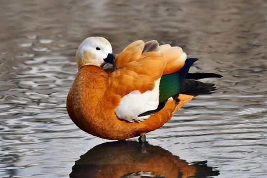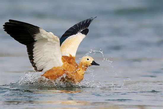 據了解,赤麻鴨隸屬于雁形目鴨科麻鴨屬,全身橙栗色,外形似雁。雌雄鳥差異在于雄鳥夏季具黑色領環,飛行時白色的翅上覆羽及銅綠色翼鏡明顯可見,嘴和腿呈黑色。赤麻鴨棲息于開闊草原、湖泊、農田等環境中,多見于內地湖泊及河流,以各種谷物、昆蟲、甲殼動物、蛙、蝦、水生植物為食。