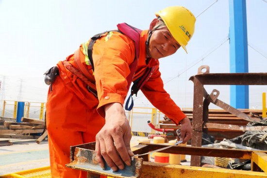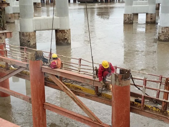 “我從小生活在大山里,還是在這邊第一次見到大海,參加這么大的工程建設我也感到榮幸,F在項目也到了沖刺的關鍵時候,大家一起咬咬牙,這個月中旬我們整個互通的墩柱施工也就能干完了!卑⒑蚱胶驼f。目前,濱;ネㄊ┕^域正在進行鋼棧橋的搭建和墩柱的澆筑工作,為下一步臨時卸貨平臺的搭建,順利完成預制T梁上岸任務奠定重要基礎。