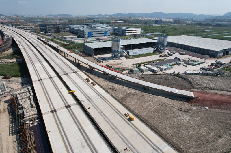 杭甬復線寧波一期項目龍山互通施工現場。浙交建設供圖