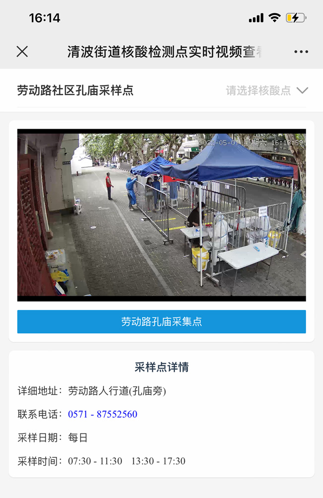 如果能夠提前了解這些情況,不但可以節約市民的時間,還有助于提升檢測效率。為此,杭州市上城區清波街道利用“清波慧眼”系統,在“幸福清波”公眾號試上線了“社區檢測點視頻在線”服務,F在,在清波的市民只要點擊該公眾號里的“核酸檢測點位實況”選項,就可以在手機上看到自己所選的核酸檢測點的實時現場情況。在頁面上,還有相關檢測點的工作時間,需要檢測的市民可以結合實時的人流情況,合理安排自己的檢測時間。