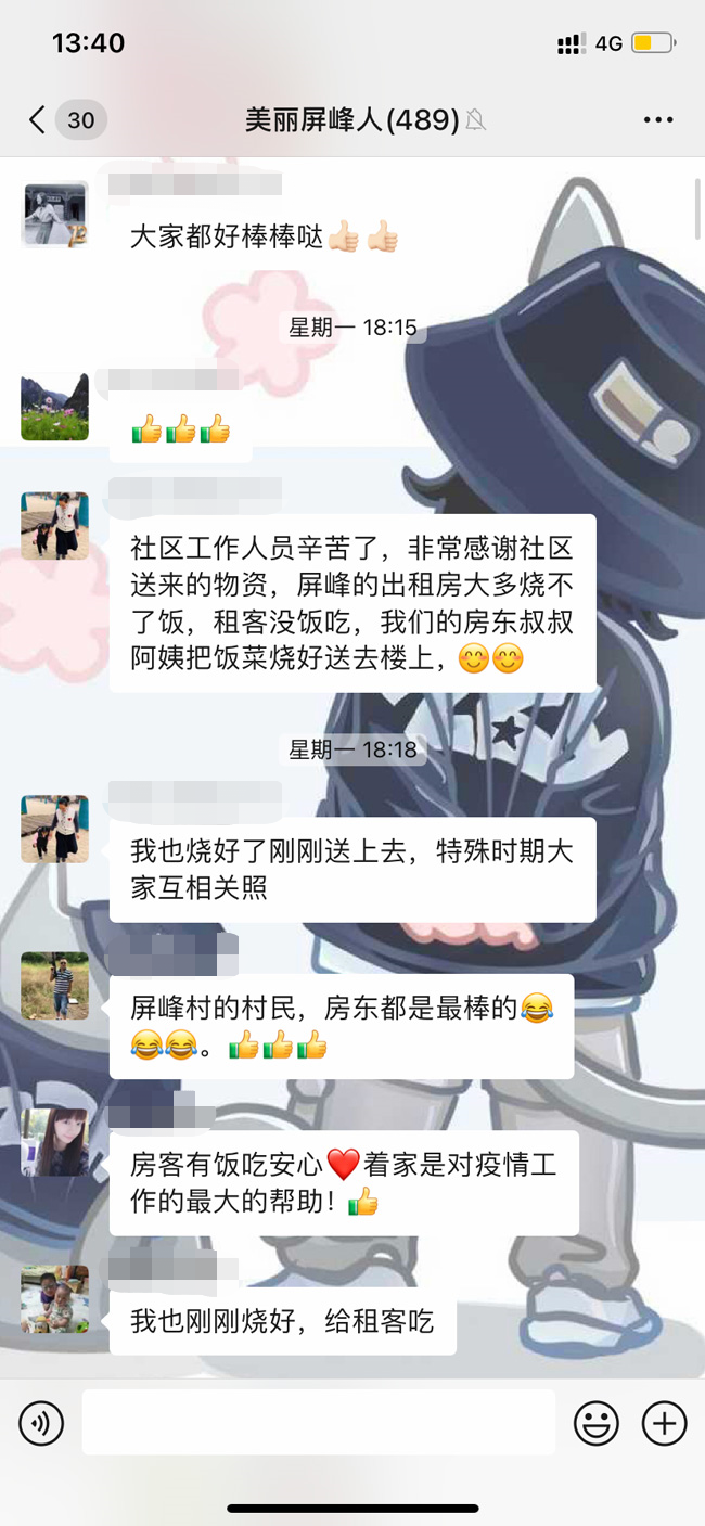 屏峰社區相關負責人介紹,屏峰新村共有約400位房東,有近一半都加入了為自家租戶做飯的隊伍。