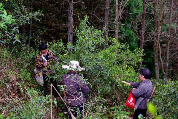 有些采茶速度特別快的人,一天能采到15公斤。77歲的村民張鳳姑就是位采茶能手,她一天的采茶收入近500元!斑@一片茶樹林,在我上小學時就有60多年的樹齡了……”張鳳姑一邊采茶,一邊講起了她與這片茶樹林的淵源。