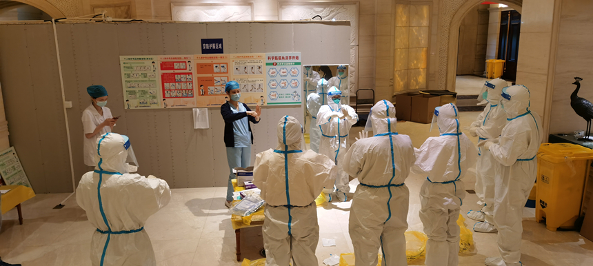 上午,區里召開了“點長”視頻會議,圍繞視頻監控、核酸采樣、健康監測、個人防護、場所消毒等內容,詳細介紹了隔離點各類工作的要求。我也對隔離點的管理有了更為深入的認識。隨后,我立即召集各組工作人員,傳達會議精神,集體進行“充電”。