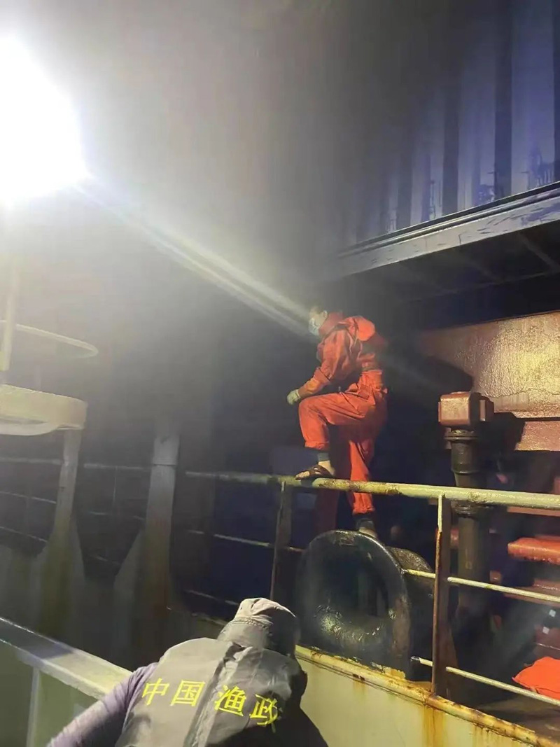 接到指令后,普陀區海洋與漁業局立即派出中國漁政33126輪火速趕往事發現場,并于21時30分到達事發海域。救援人員發現,“華航1號”已全船失電,失去航行能力,大火正從船舶機艙處冒出,船上船員已全部穿好救生衣,撤離至甲板等待救援。此時海面風力偏北風6級,陣風7到8級,海面風浪4級,風疾浪涌給救援人員靠泊急救帶來很大困難。