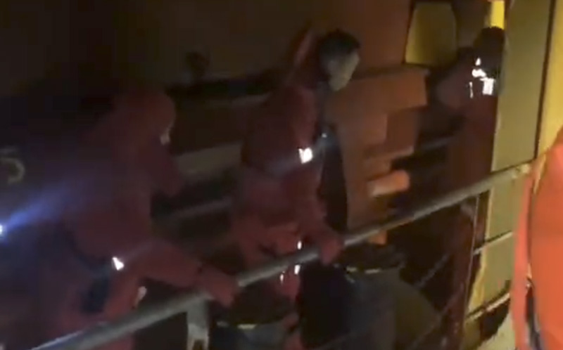 經過幾次努力后,最終,救援人員克服海上惡劣天氣,成功將船上19名船員安全轉移至救援船上。救援人員在確認船員全部成功撤離后,火速離開事發船舶。