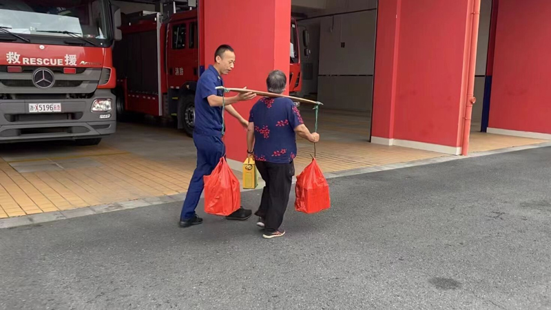 “我以為婆婆要在我們消防站門口擺攤,正要提醒她不要擋住了消防車通道!必撠熼T崗執勤的消防隊員說。
